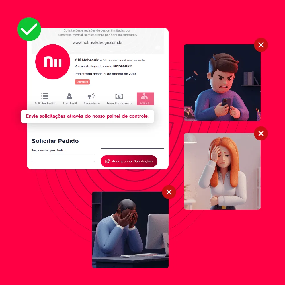 Com a assinatura da Nobreak Design, é possível evitar o estresse de trabalhar com freelancers, reduzir o risco de contratar designers internos e economizar dinheiro que seria gasto com agências para obter projetos gráficos simples de maneira rápida e eficiente.