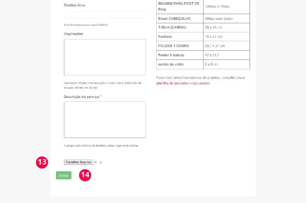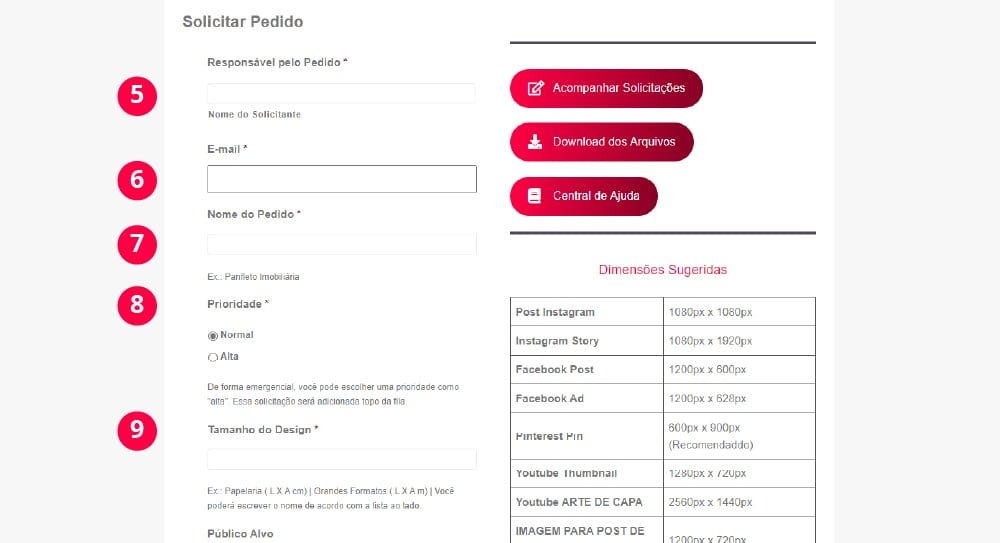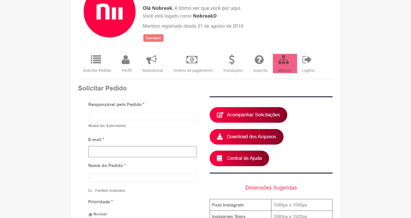 Clique em Solicitar Pedido para preencher as informações referentes ao seu pedido de logotipo ou qualquer outro criativo que deseja.